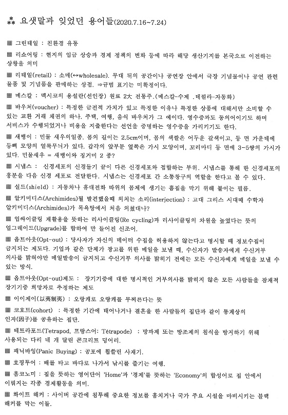 요샛 말과 잊었던 용어들('20.07.16~24)