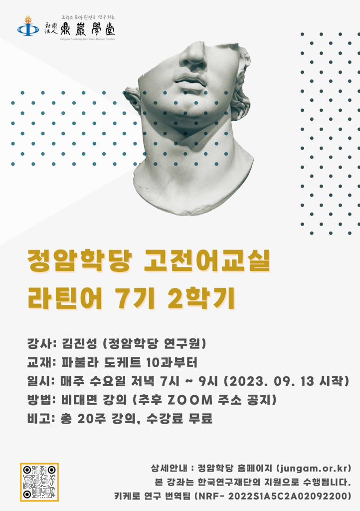 그리스, 로마 고전 연구 기관인 정암학당에서 마련한 고전어 강좌 소식을 우리 학회 회원님께도 공유해 드리고자 합니다.