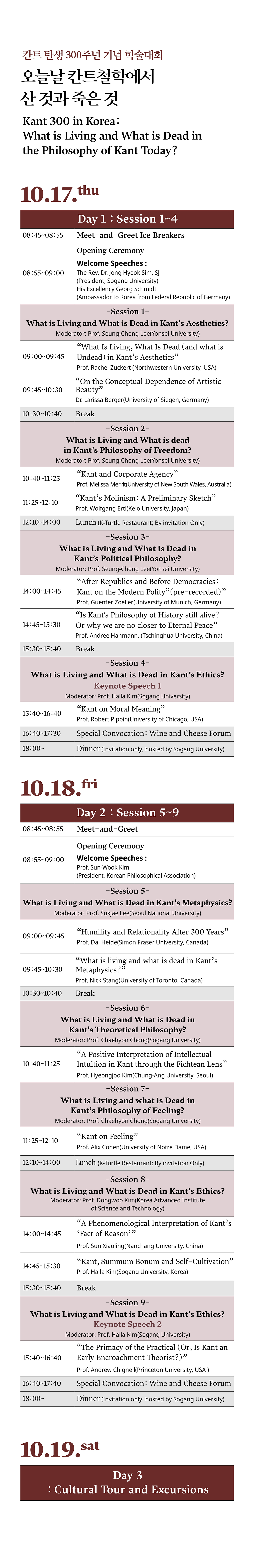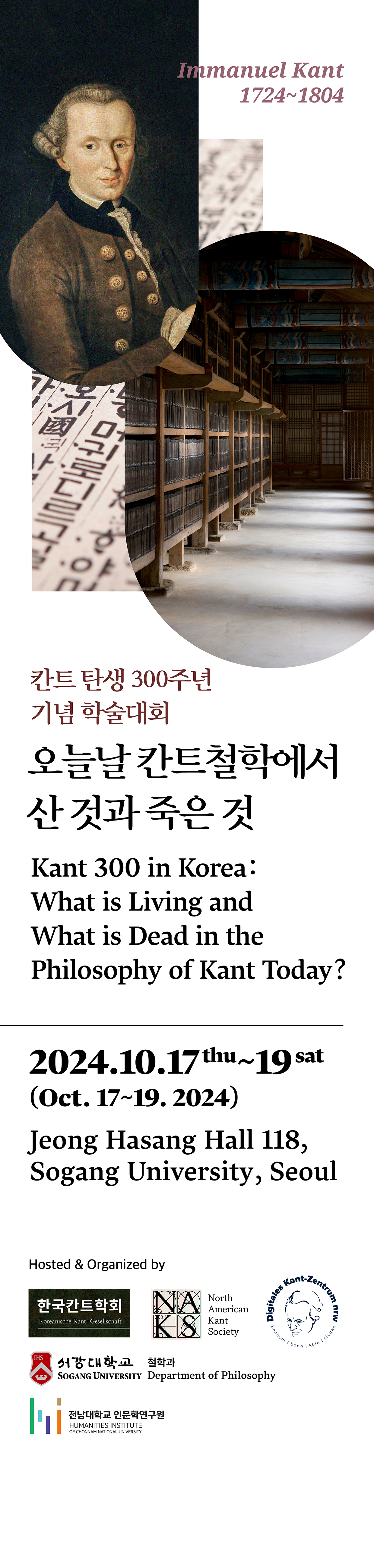 ◉ 주최 : 한국칸트학회 Korean Kant Society, 북미칸트학회 North American Kant Society, 독일디지털칸트연구센터 Digitales Kant-Zentrum NRW in Germany, 서강대학교 철학과 Department of Philosophy at Sogang University, 전남대학교 인문학연구원 Humanities Institute of Chonnam National University