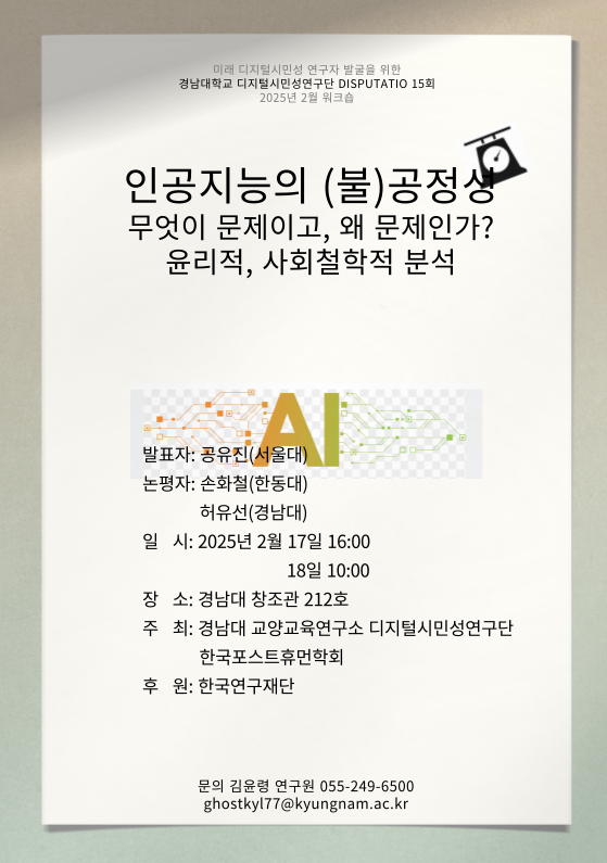 경남대학교 교양교육연구소 디지털시민성연구단’에서 진행하는 <제15회 Disputatio>에 학내 여러분을 초대합니다.
