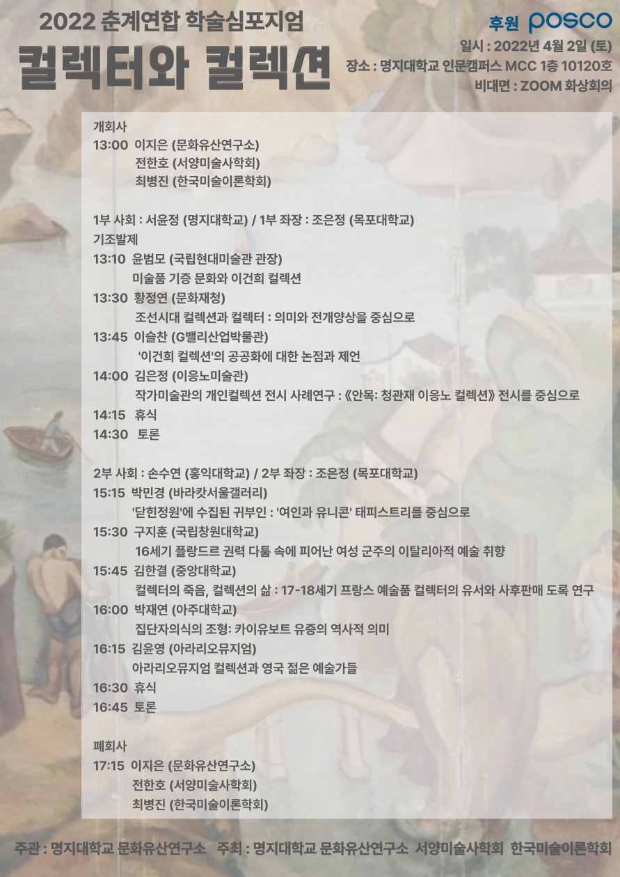 * 주최 :  명지대학교 문화유산연구소, 서양미술사학회, 한국미술이론학회
