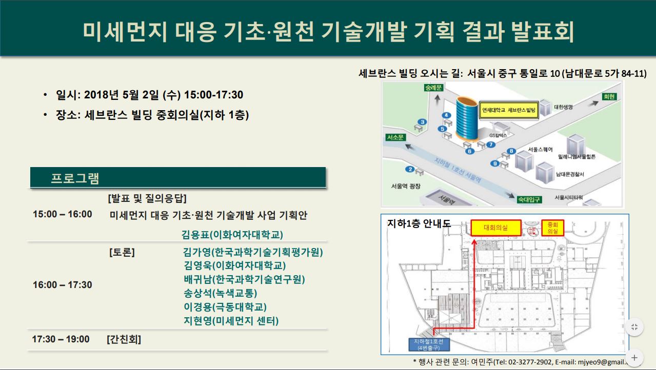 미세먼지 대응 기초·원천 기술개발 기획 결과 발표회(5/2)