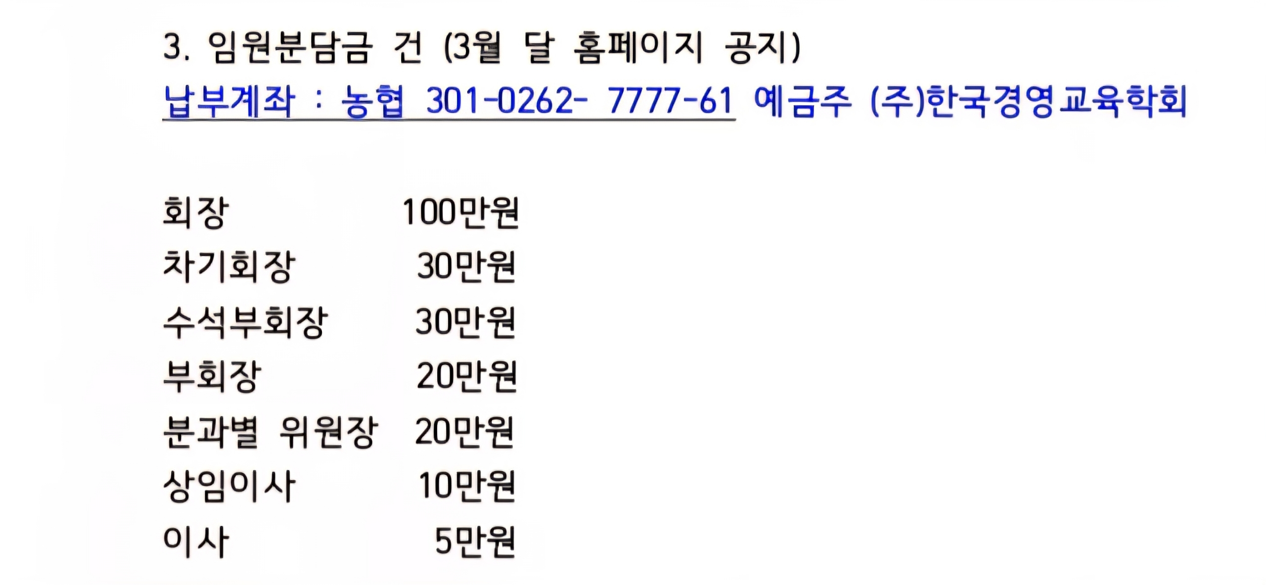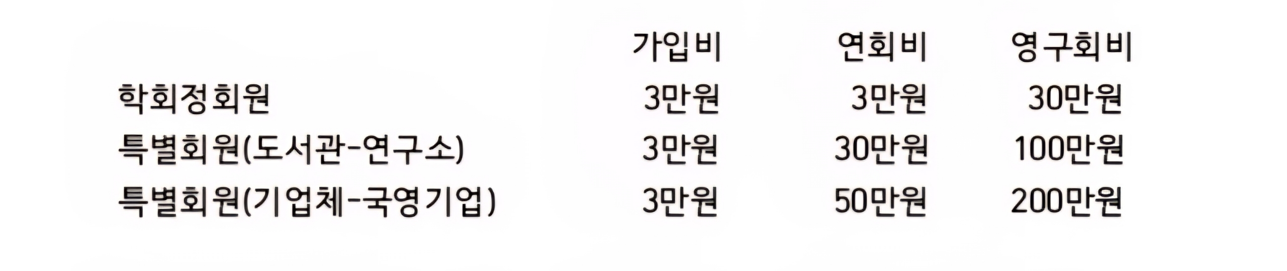 가입비, 연회비, 영구회비 공지