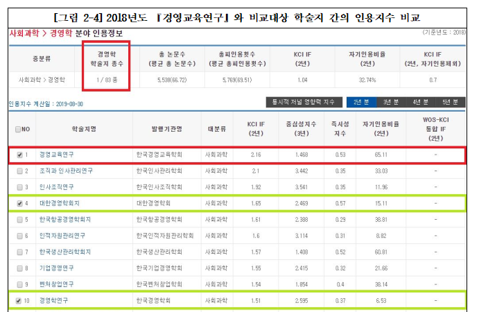 경영교육연구 KCI IF = 2.16 경영관련 83종 학술지 중에서 1위 (2018년도 기준) 입니다.