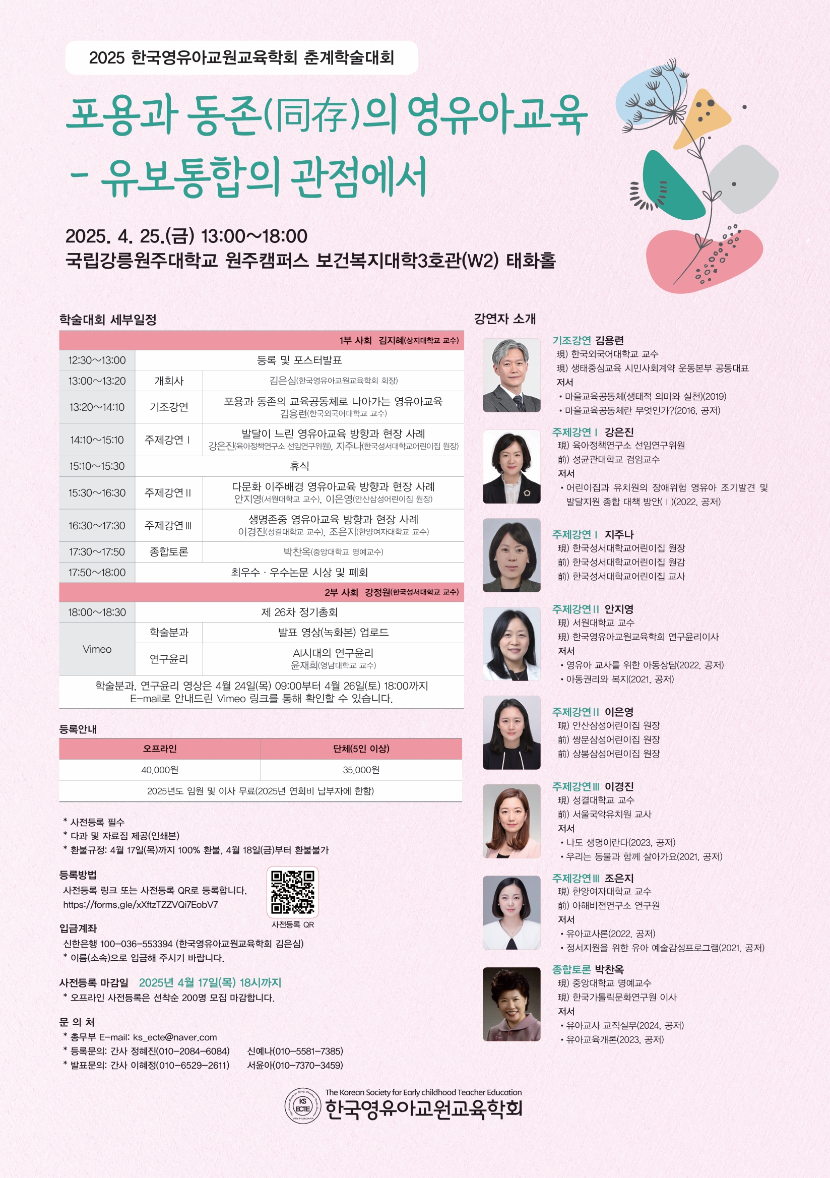 [한국영유아교원교육학회] 2025 춘계학술대회 개최 (2025년 4월 25일 금요일)