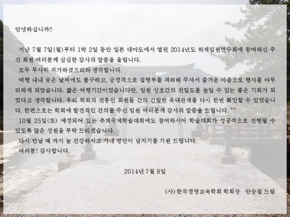 2014 하계임원연수회를 마치면서 학회장 인사말
