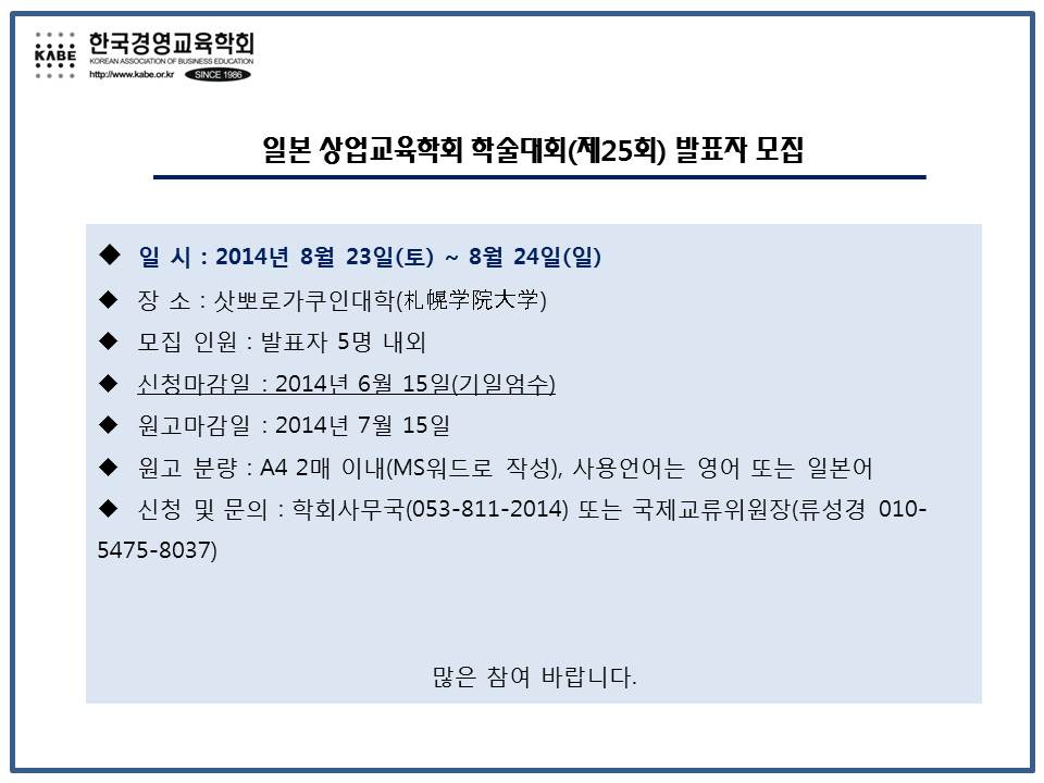 2014 일본 상업교육학회 학술대회(제25회) 발표자 모집 안내